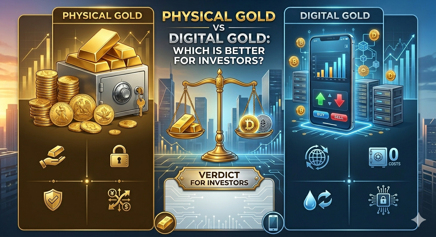 Gold has always been one of the most trusted investment options, especially in India. With the rise of technology, investors now have the option to choose between physical gold (jewellery, coins, bars) and digital gold (online gold backed by physical reserves). Both options serve the same purpose—wealth preservation—but differ in convenience, cost, and investment efficiency.