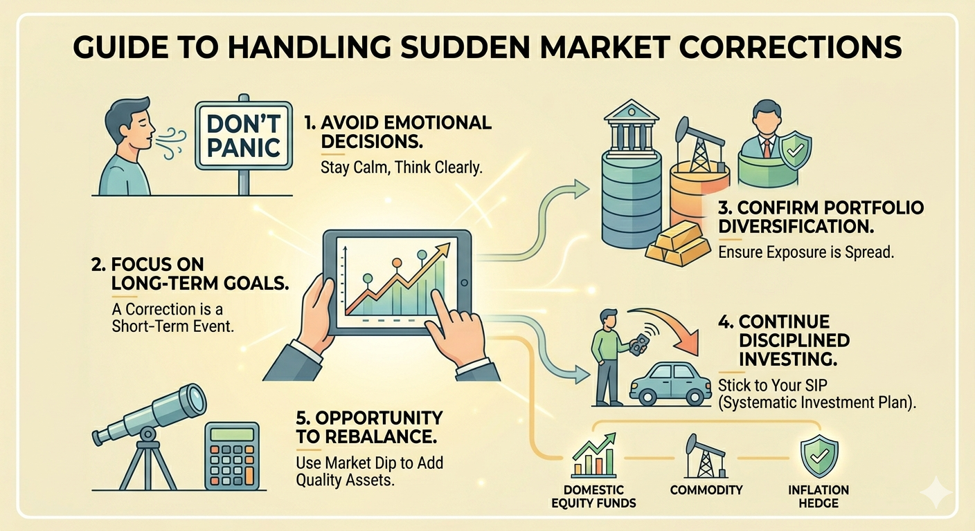Sudden market corrections during war are driven by fear, not fundamentals. While short-term volatility is inevitable, long-term growth remains intact. The real difference between successful and unsuccessful investors is how they react during such times.
