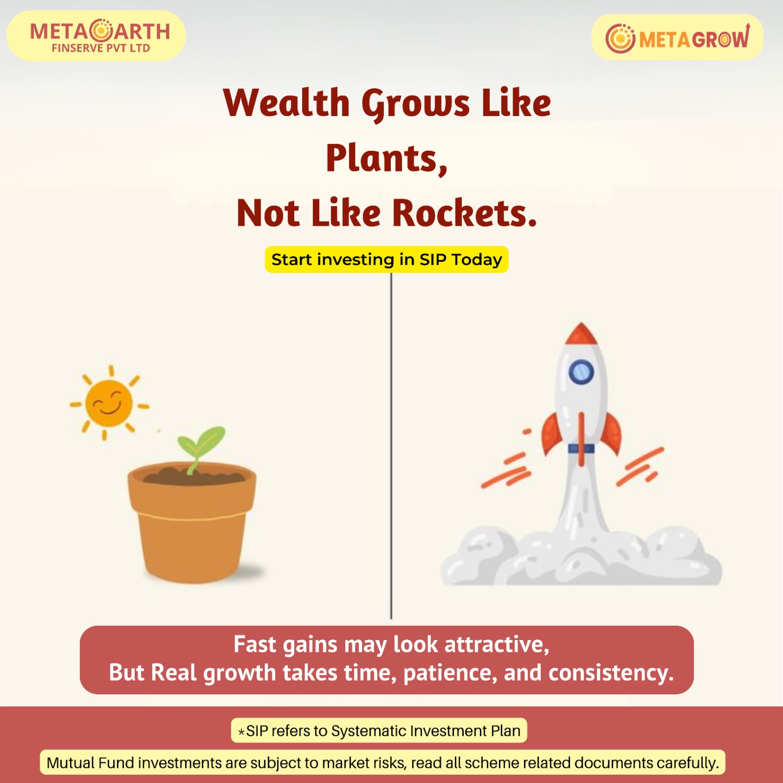 Wealth creation is often misunderstood as something that happens quickly, like a rocket taking off overnight. In reality, it is much closer to the steady and natural growth of a plant—slow, consistent, and requiring patience. Just like a plant needs time, care, and the right environment to grow, your investments need discipline, regular contributions, and time in the market to truly flourish.