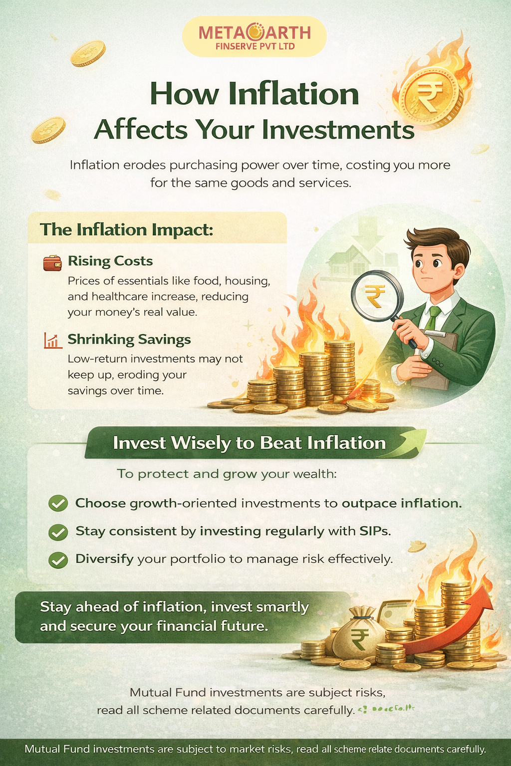 Inflation also highlights the importance of long-term planning and disciplined investing. Regular investments, such as through SIPs, help you stay consistent and take advantage of compounding, which can outpace inflation over extended periods. At the same time, diversifying your portfolio across different asset classes can help manage risk while aiming for better returns.