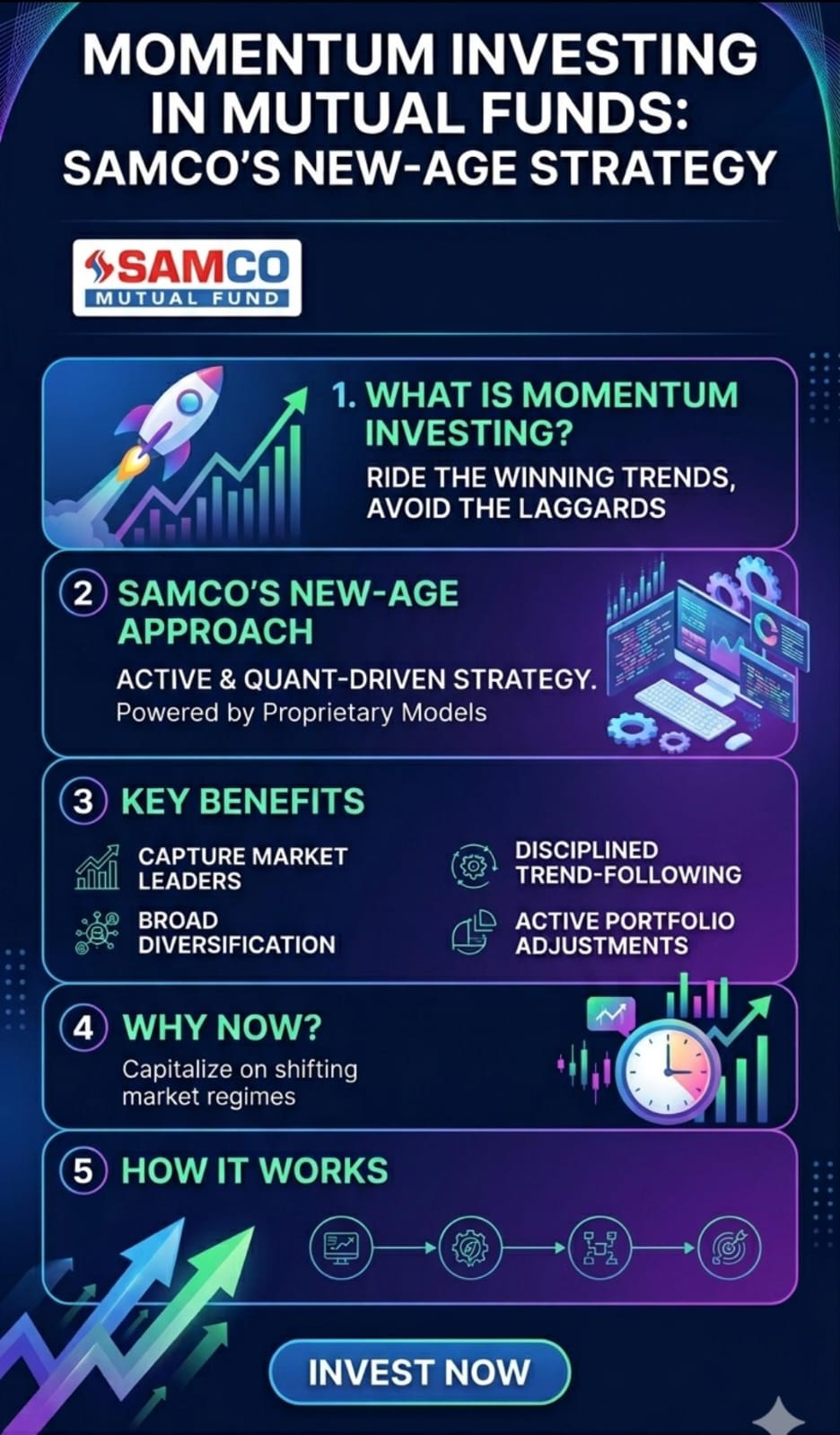 Momentum investing has emerged as a modern and data-driven strategy in the mutual fund space, focusing on identifying stocks that are already showing strong upward trends. Instead of predicting which stocks might perform well in the future, momentum investing relies on the idea that stocks performing well today may continue to do so in the near term. Samco Group has embraced this approach by introducing new-age mutual fund strategies that use quantitative models and market data to capture ongoing trends efficiently.